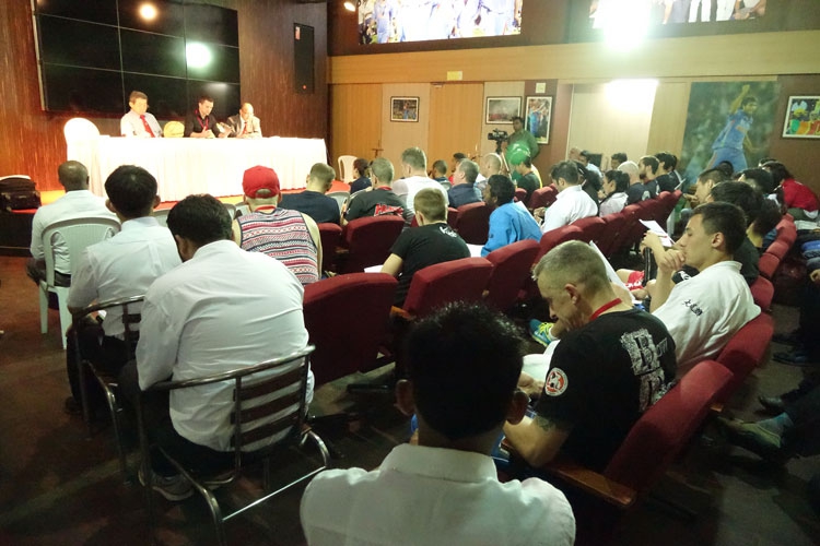 The KUDO rules overview Victory or defeat is decided by any direct attack using “punch, kick, elbow, head-butt, throw, etc”. Face protector (Neo headgear KU) must be worn and techniques are to be executed with bare hands and feet. (Fist supporters approved by committee may be used) Also ground techniques such as strangle and joint techniques are allowed to take give up. Grabbing and swinging an opponent and punching, elbowing, head-butting or kicking an opponent with holding “KUDO-GI” are allowed for up to 10 Seconds. But, the allowed techniques are limited when there is a difference of over 20 Physical Index (height in cm + weight in kg) within the competitors. Attack using elbow and head-butt are allowed. Tackle and throwing are allowed. Ground techniques are allowed twice during every 3 minutes of the original match, extension or re-extension for a maximum of 30 seconds each time. Read More »